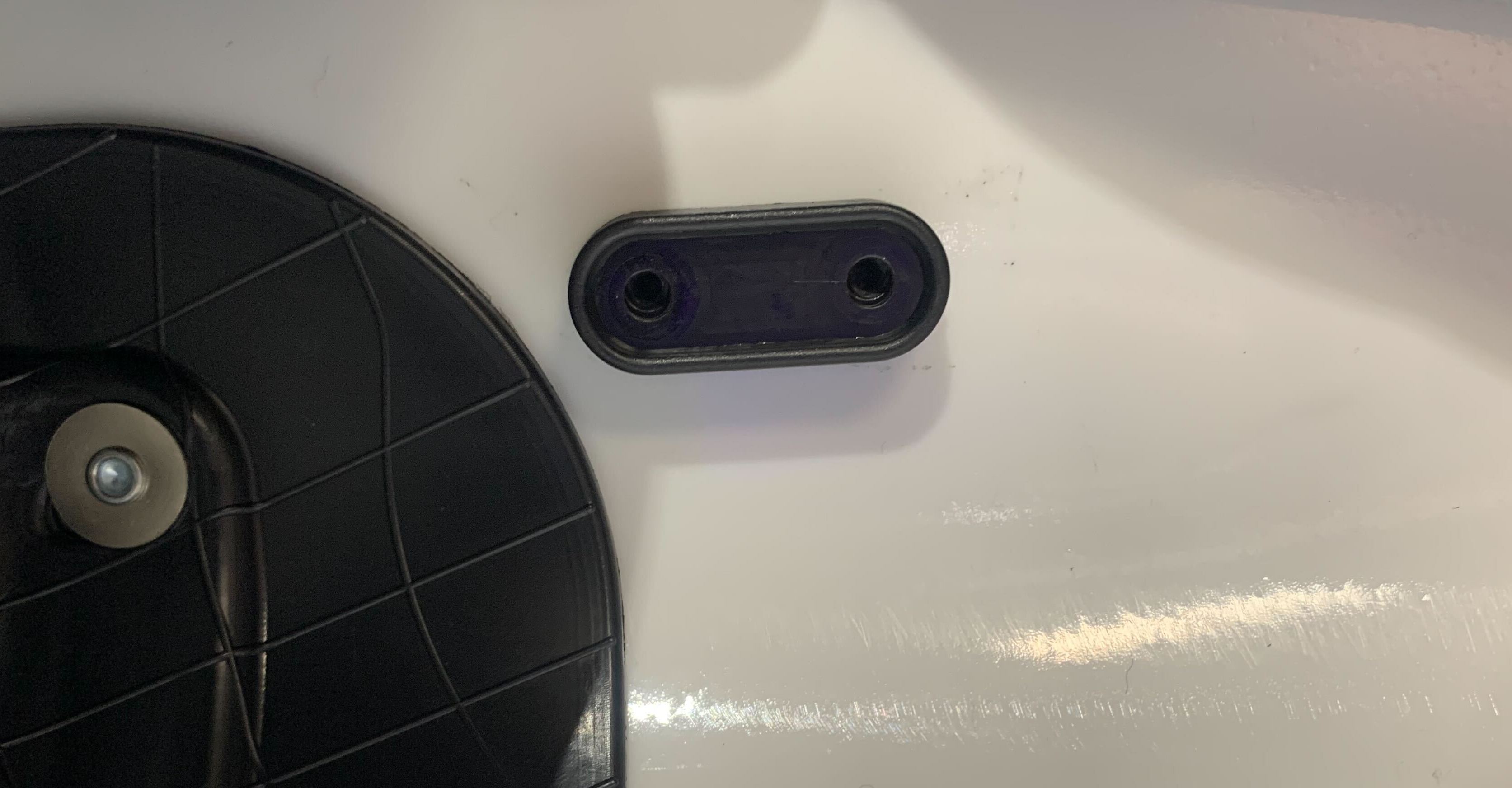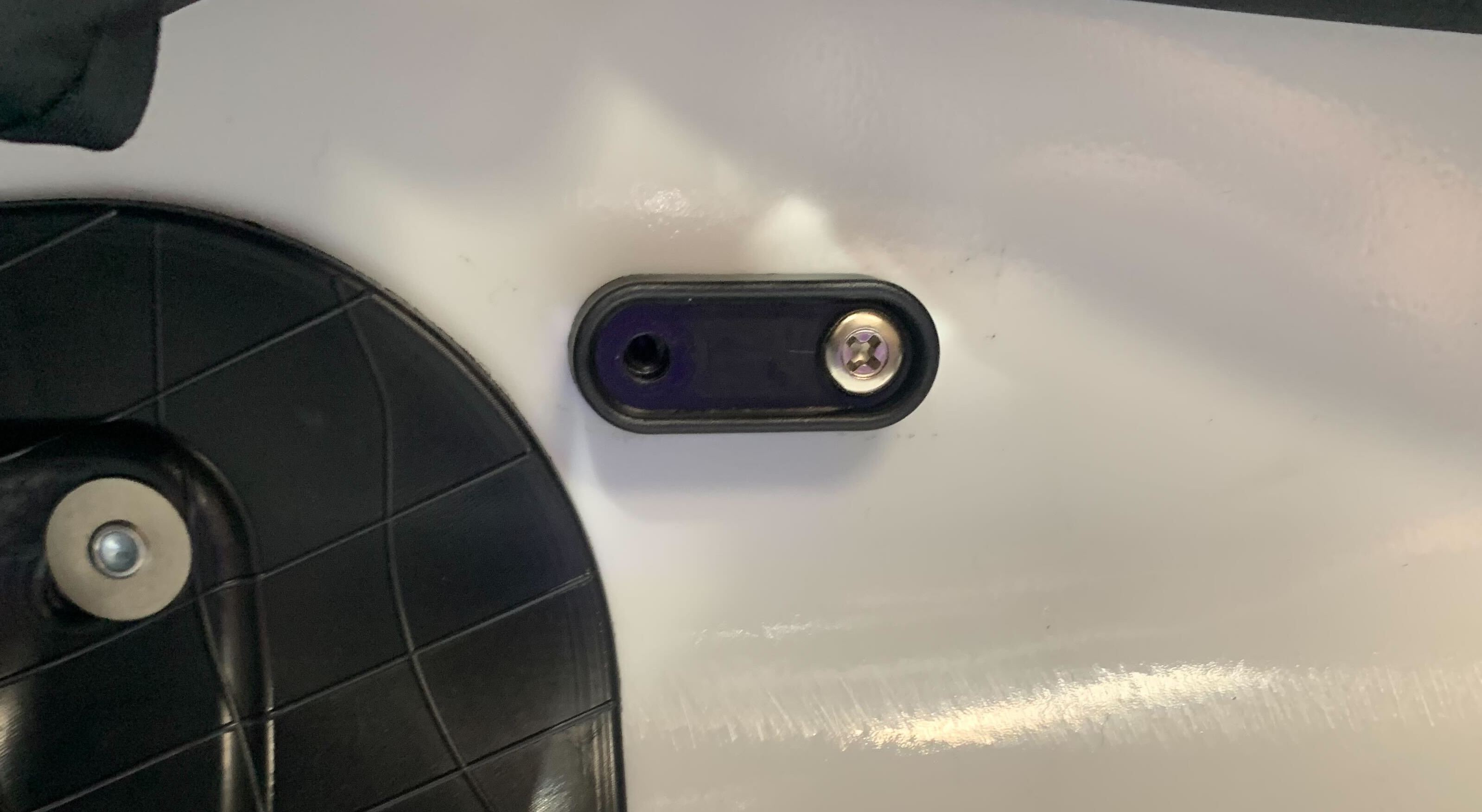 5. Place the screws into the holes, making sure they're aligned. Note: it may be easier to half-screw one in, and adjust once both are inserted